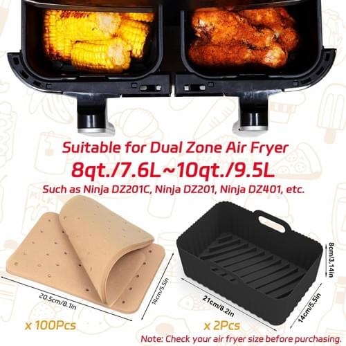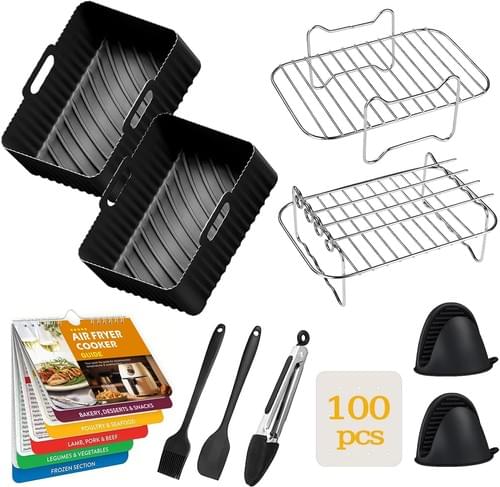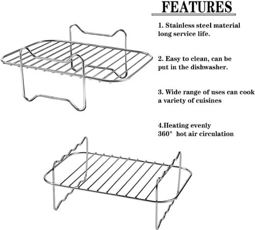 6 Pcs Hot Air Fryer Accessories Set, Dual Air Fryer Racks, Multi-Purpose Air Fryer Accessories, 304 Stainless Steel Rack with 4 Barbecue Sticks for Ninja Foodi DZ201/401 AF300EU AF400EU (15 PCS)