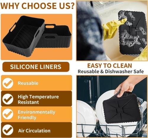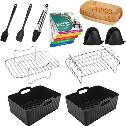 Ninja Air Fryer Accessories Set of 10 Includes Silicone Air Fryer Liner & Dual Air Fryer Racks and 100 Paper Lining and Silicone Gloves for Ninja Dual AF300UK AF400UK