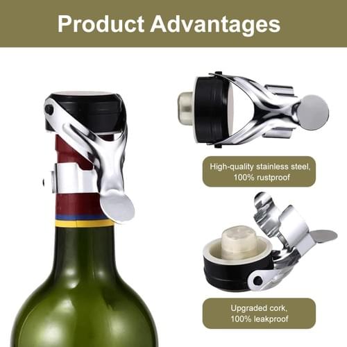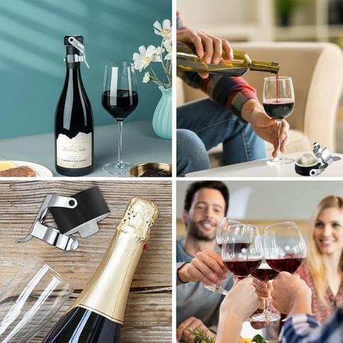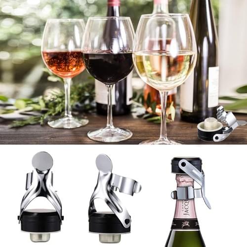 Pack of 4 bottle caps with lever, champagne stopper, vacuum seal, universal bottle stopper, vacuum sealed champagne stopper, wine bottle stopper, stainless steel